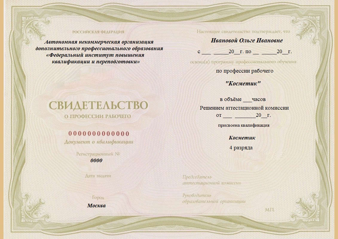 Свидетельство о профессиональной подготовке