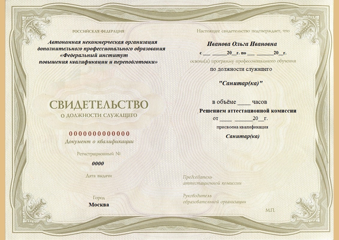 Свидетельство о профессиональной подготовке