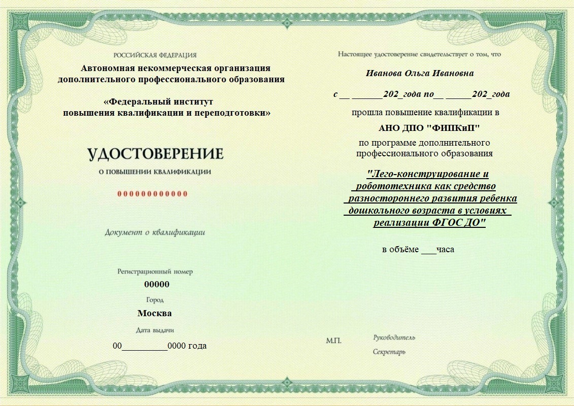 Удостоверение о повышении квалификации.