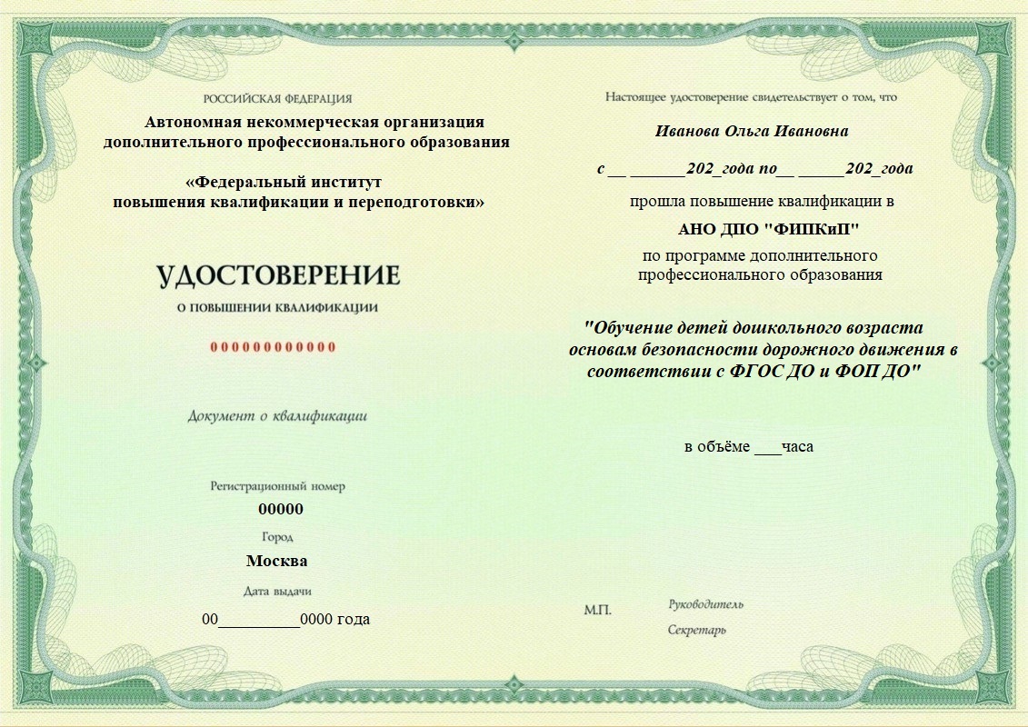 Обучение детей дошкольного возраста основам безопасности дорожного движения в соответствии с ФГОС ДО и ФОП ДО. Повышение квалификации дистанционно.