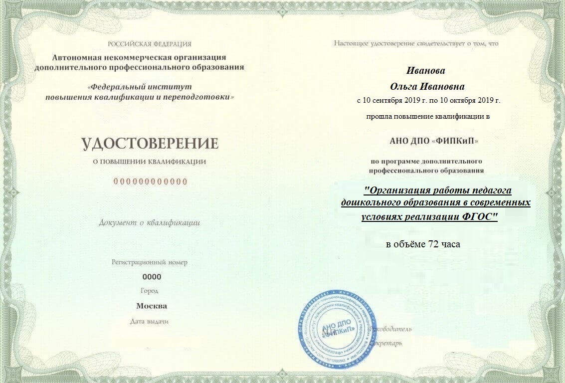 Удостоверение о повышении квалификации.