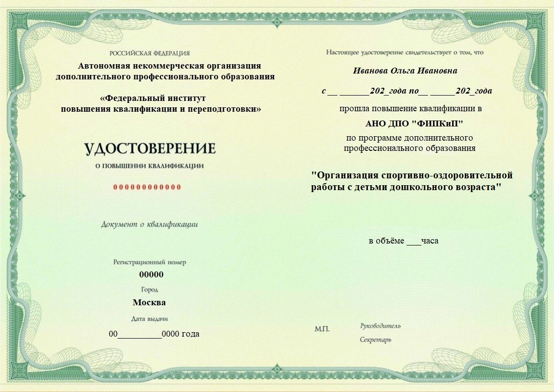 Удостоверение о повышении квалификации.