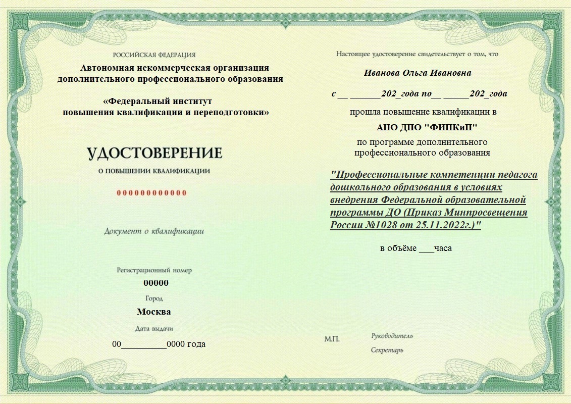 «Профессиональные компетенции педагога дошкольного образования в условиях внедрения Федеральной образовательной программы ДО (Приказ Минпросвещения России №1028 от 25.11.2022г.)»