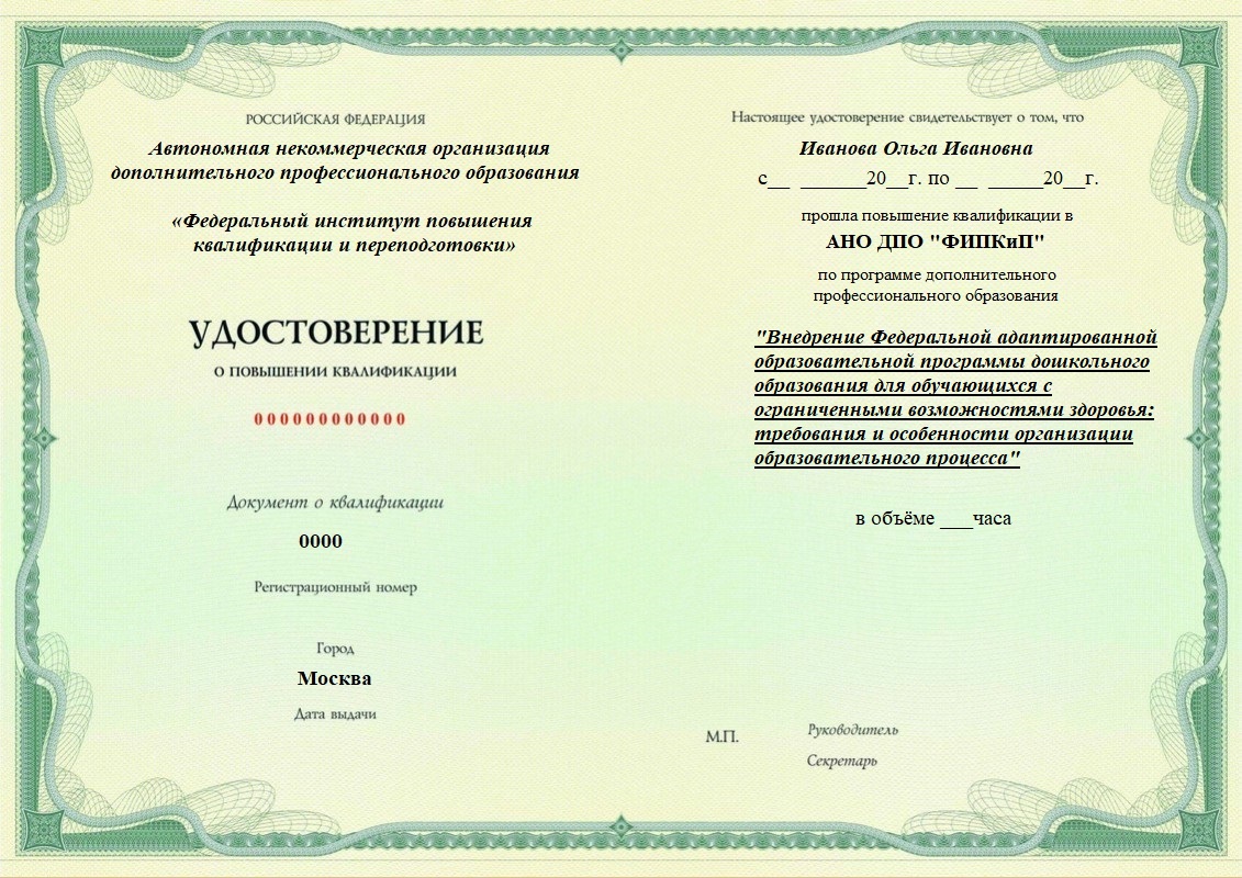 «Внедрение Федеральной адаптированной образовательной программы дошкольного образования для обучающихся с ограниченными возможностями здоровья (ОВЗ): требования и особенности организации образовательного процесса»