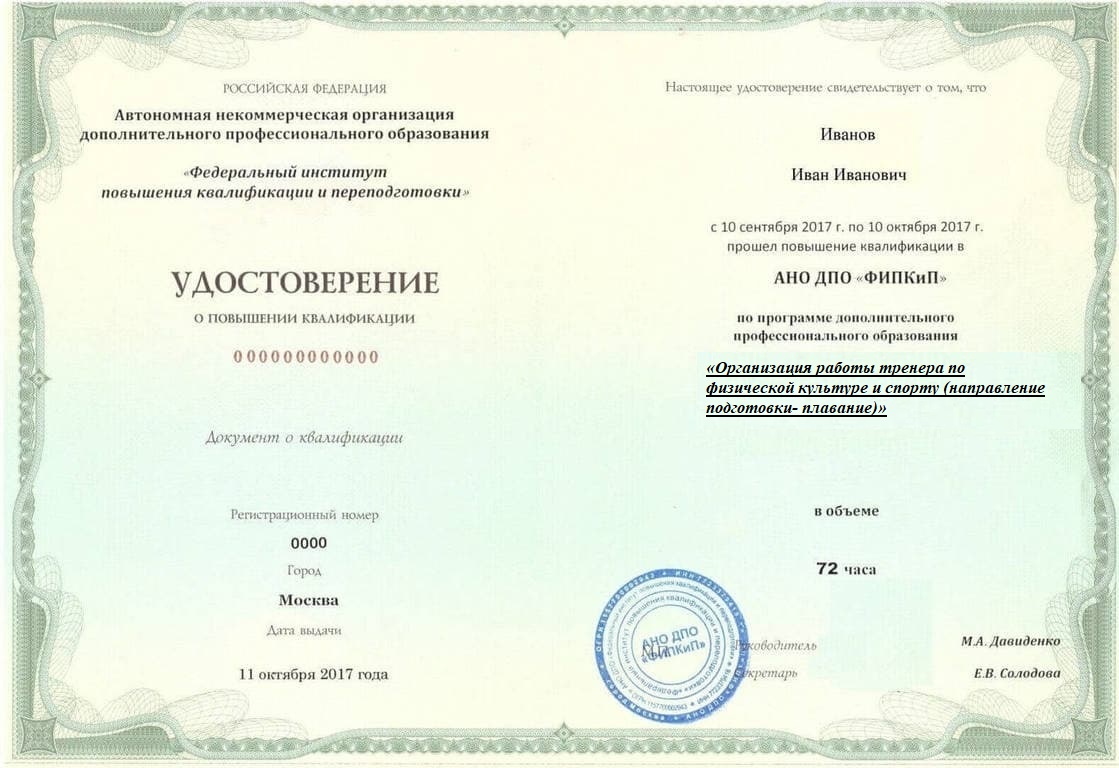 Удостоверение о повышении квалификации, дающее право на ведение профессиональной деятельности в избранной сфере.