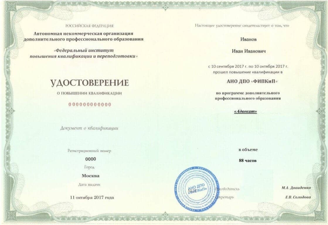 По итогу обучения выдается удостоверение о повышении квалификации.