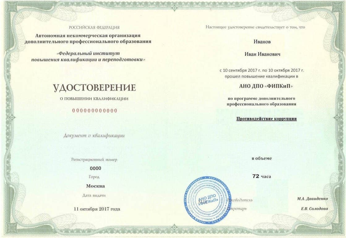 По итогу обучения выдается удостоверение о повышении квалификации.