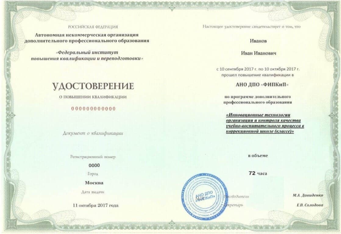 Удостоверение о повышении квалификации.