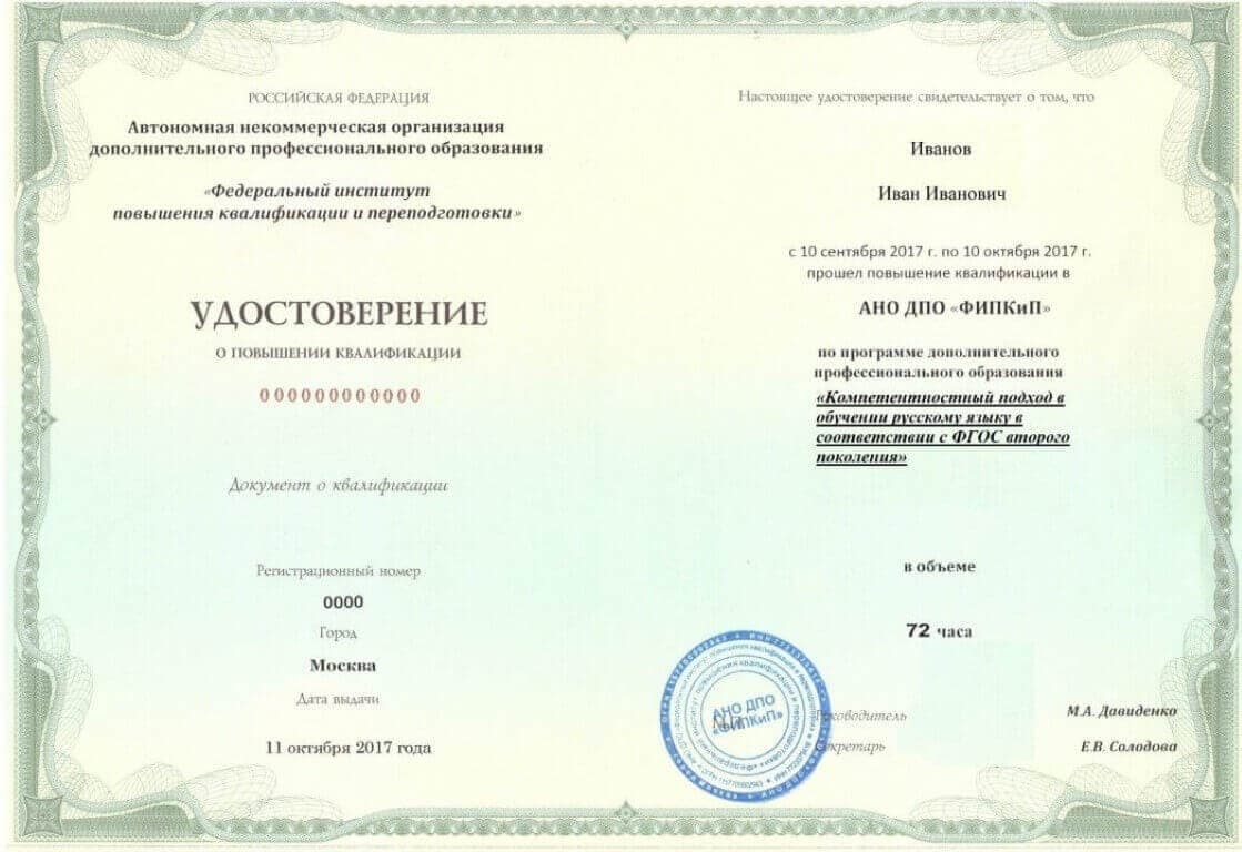 Удостоверение о повышении квалификации.