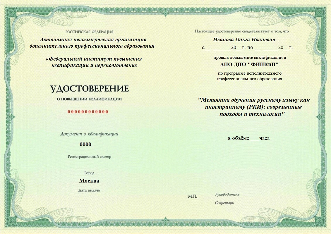 Методика обучения русскому языку как иностранному (РКИ): современные подходы и технологии. Повышение квалификации дистанционно