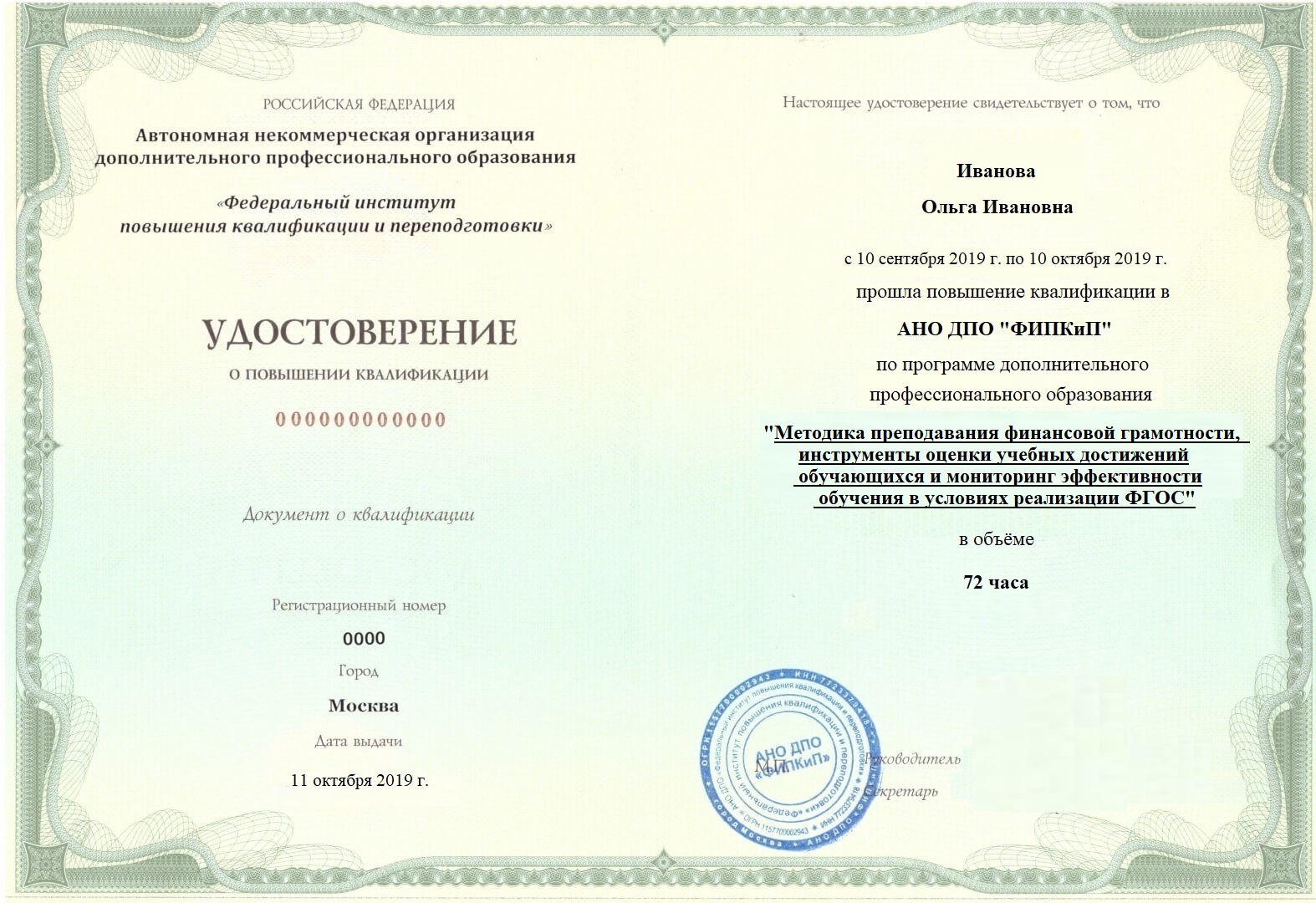 Удостоверение о повышении квалификации.