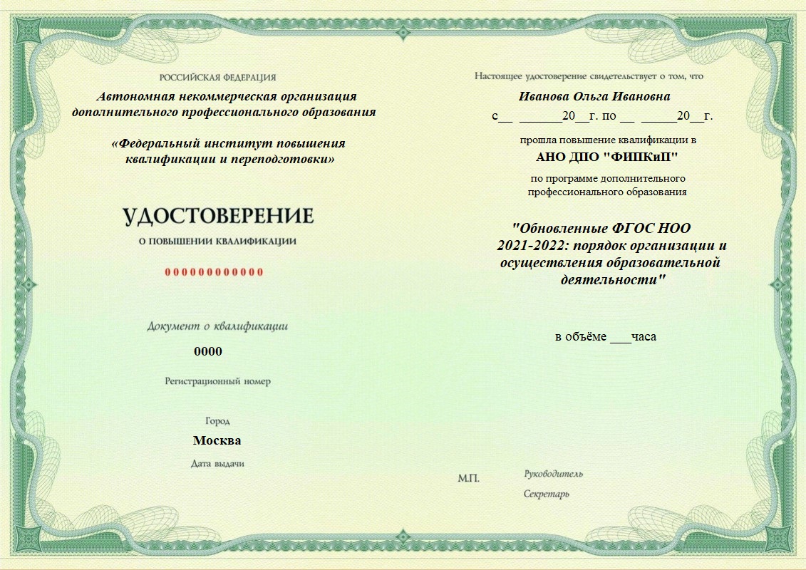 Удостоверение о повышении квалификации.
