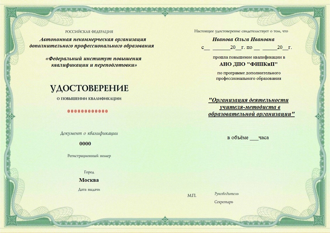 Организация деятельности учителя-методиста в образовательной организации. Повышение квалификации дистанционно.
