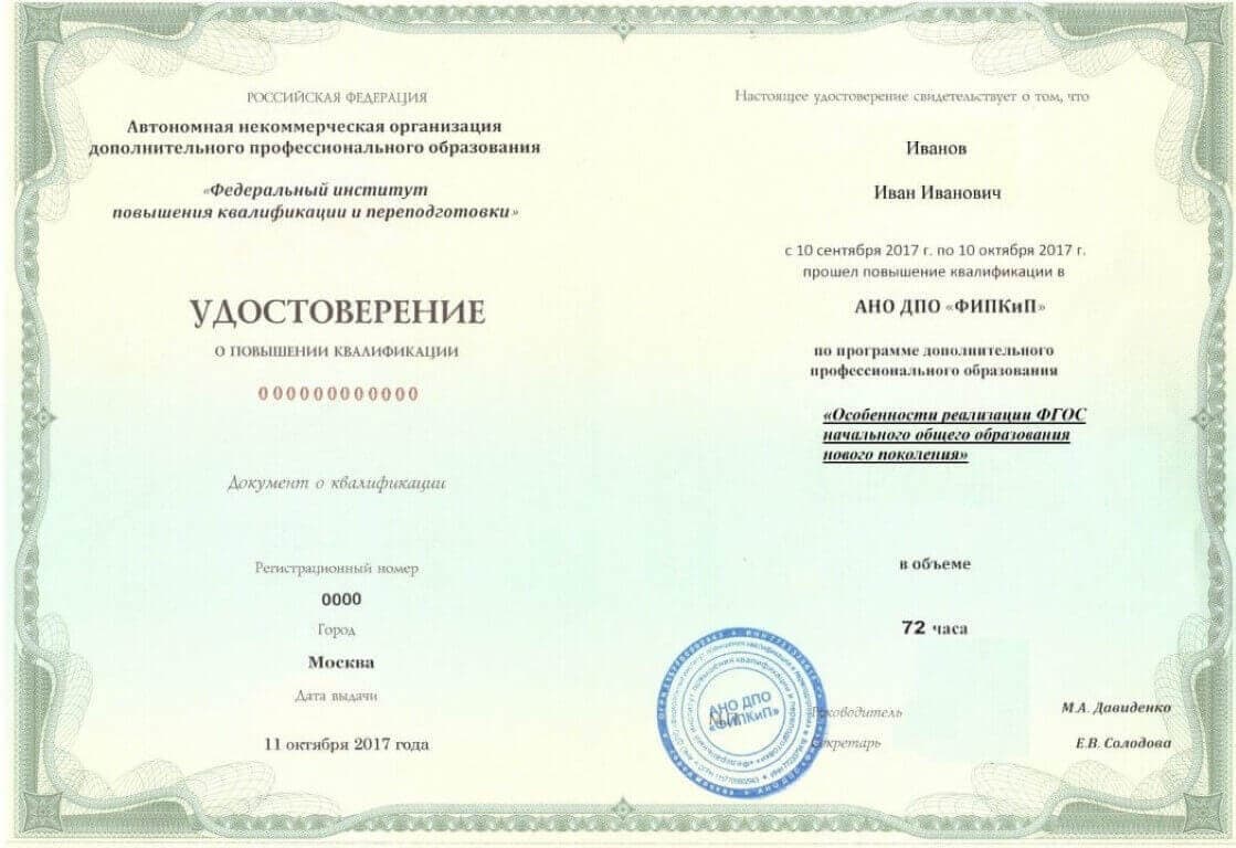 Удостоверение о повышении квалификации.