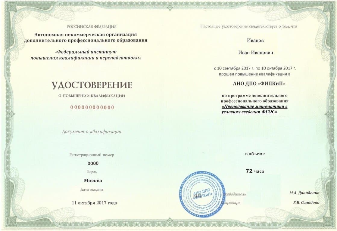 Удостоверение о повышении квалификации.