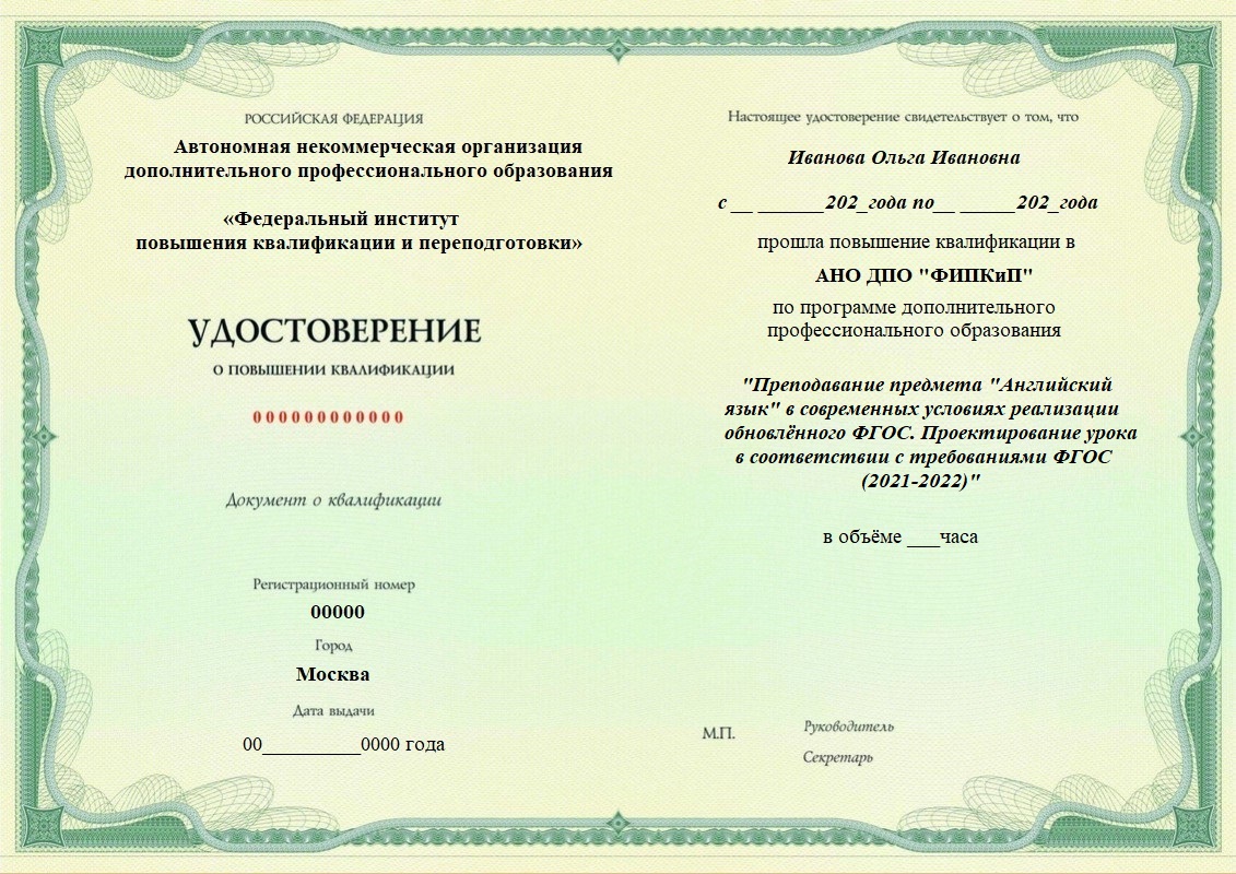 Удостоверение о повышении квалификации.