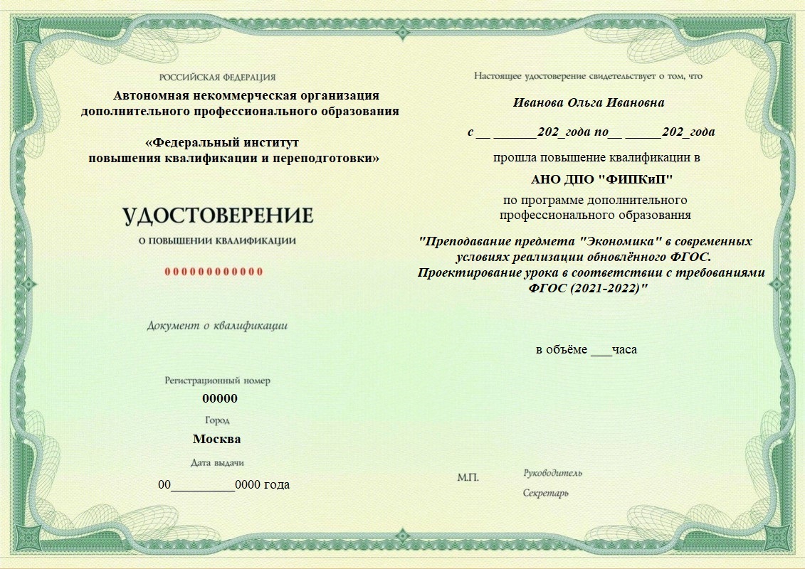 Удостоверение о повышении квалификации.