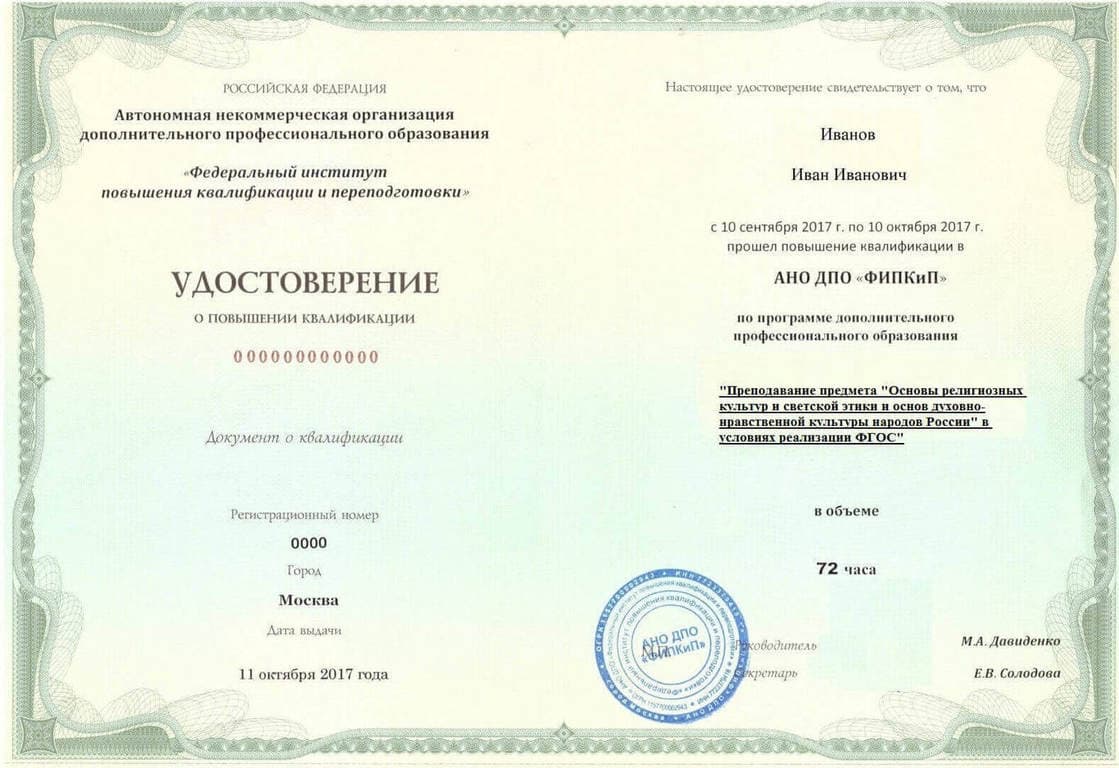 Удостоверение о повышении квалификации.
