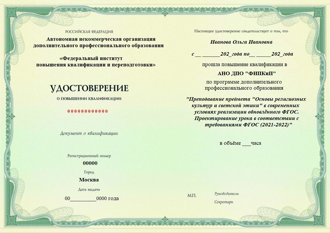 Удостоверение о повышении квалификации.
