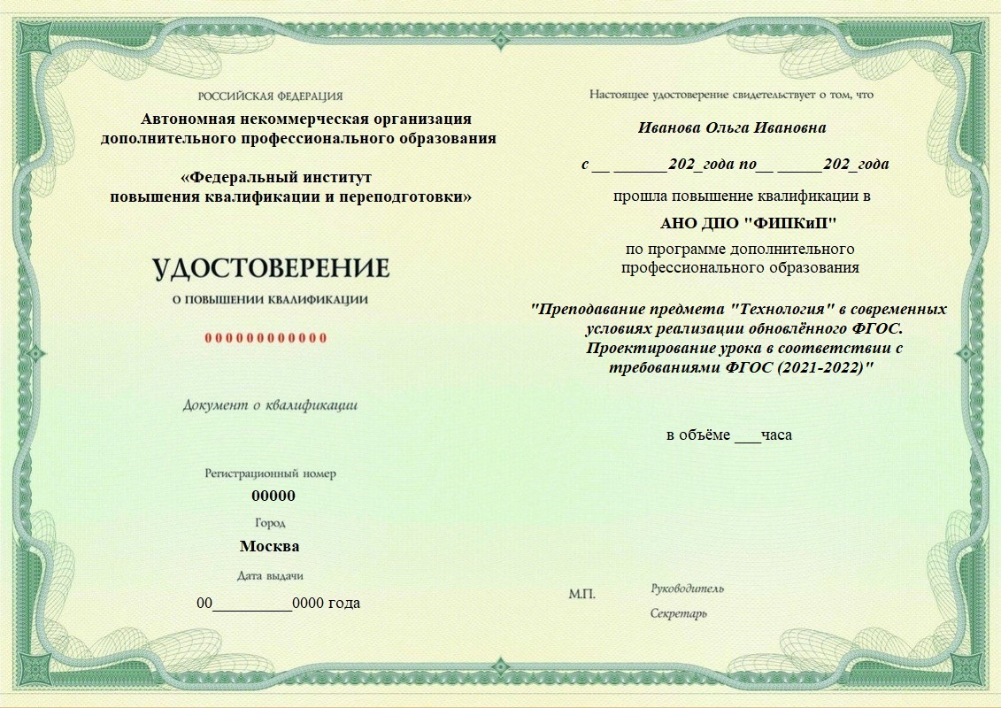 Удостоверение о повышении квалификации.