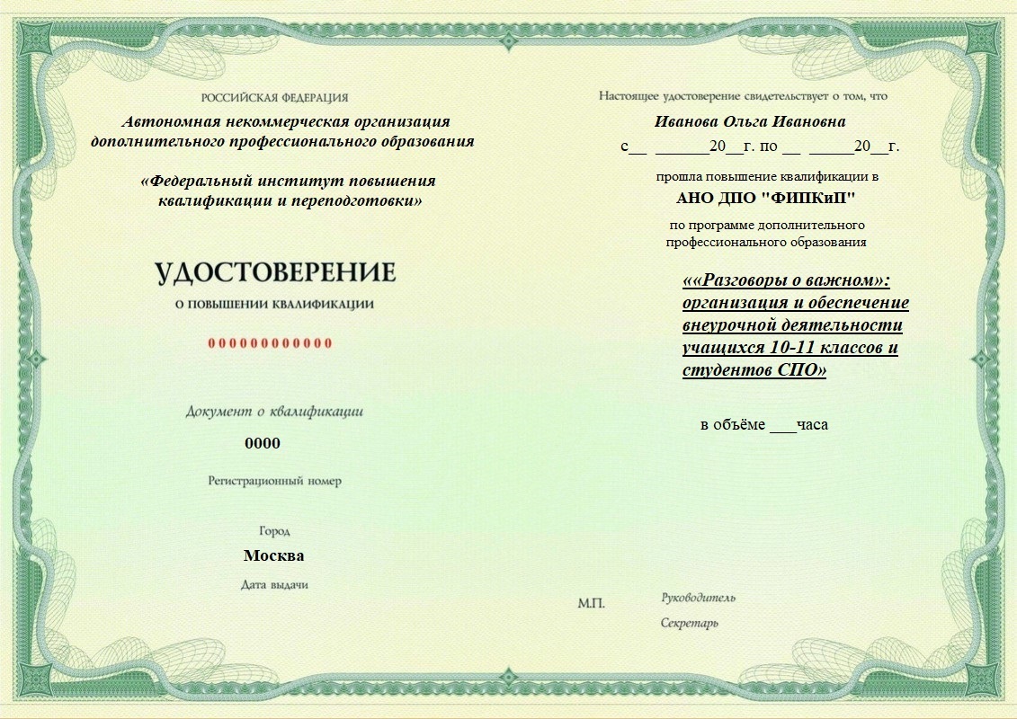 Удостоверение о повышении квалификации.