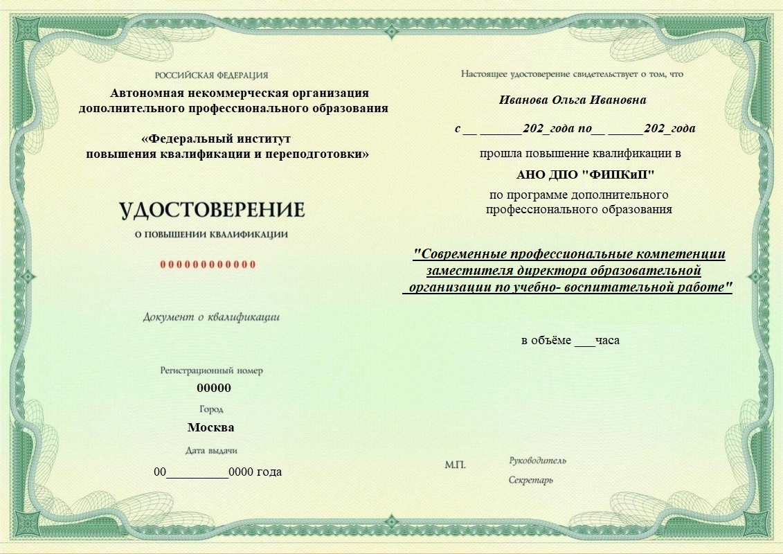 Удостоверение о повышении квалификации.