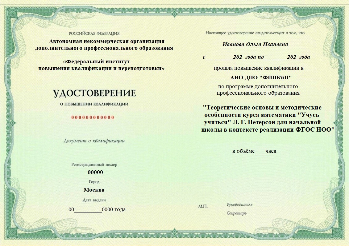 Удостоверение о повышении квалификации.