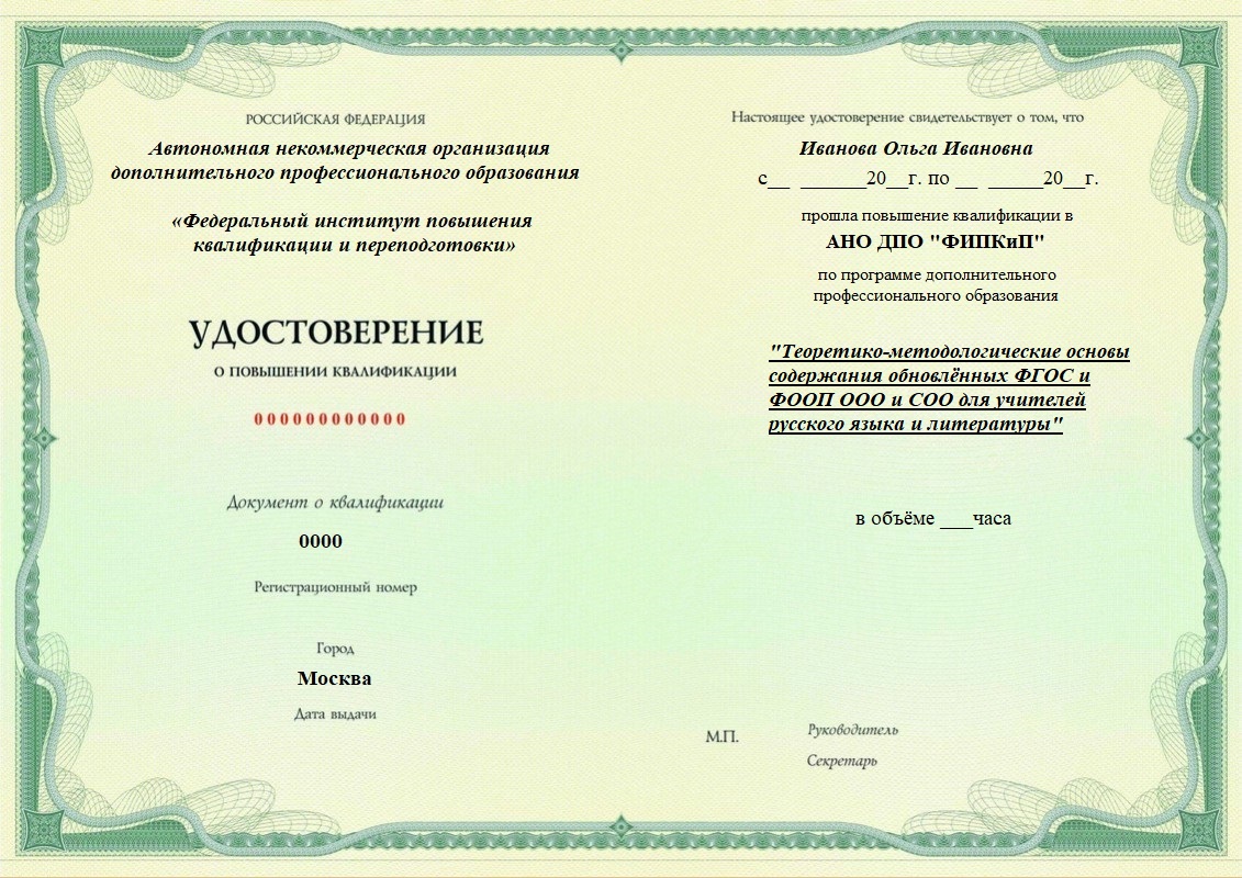 Удостоверение о повышении квалификации.