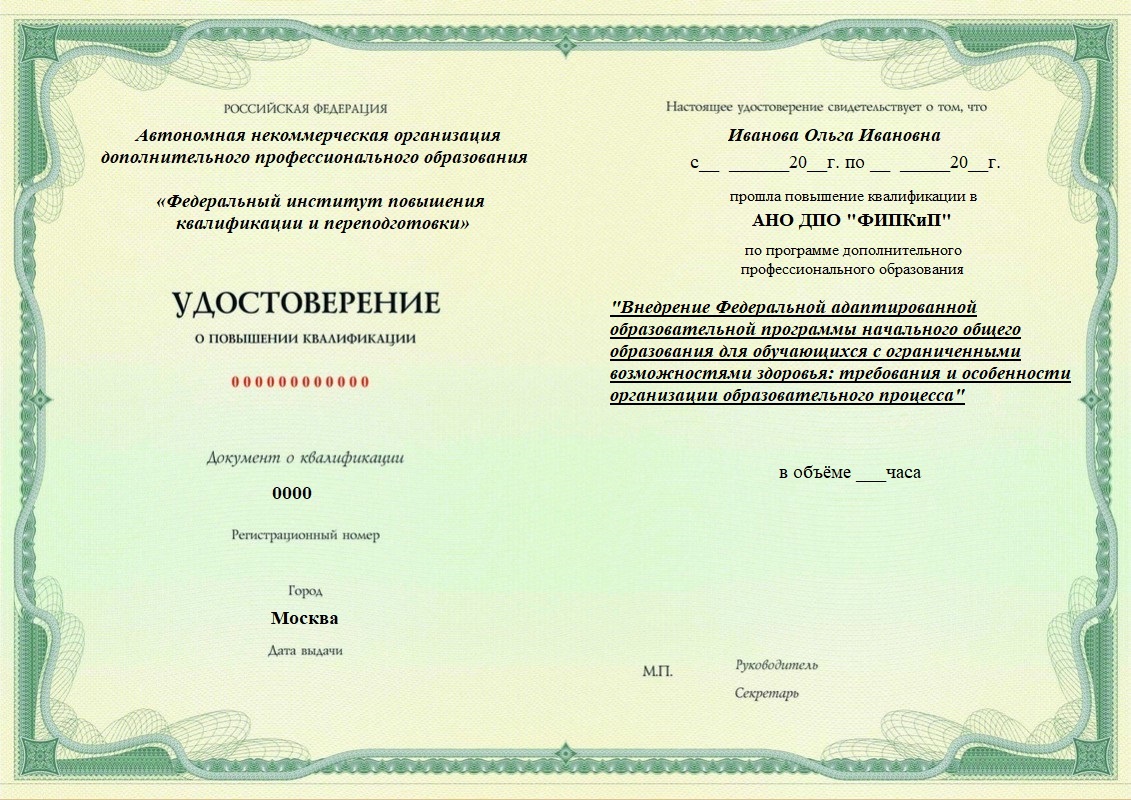 «Внедрение Федеральной адаптированной образовательной программы начального общего образования для обучающихся с ограниченными возможностями здоровья: требования и особенности организации образовательного процесса»