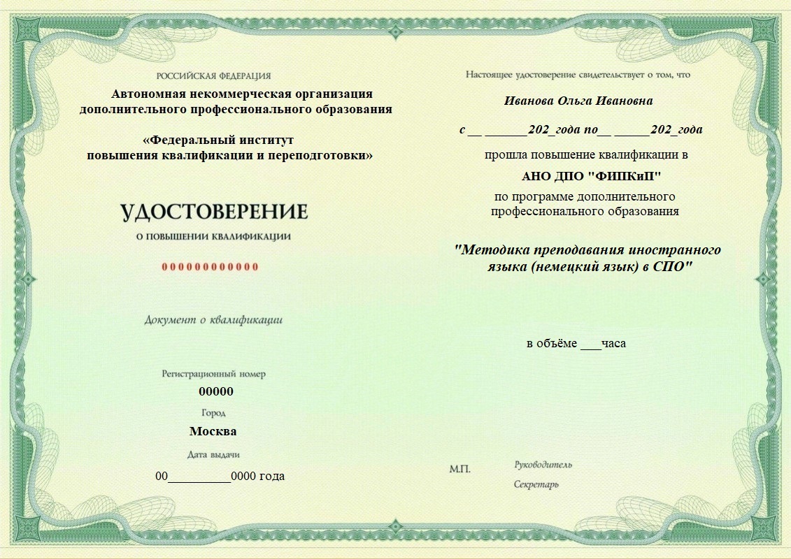 Удостоверение о повышении квалификации, дающее право на ведение профессиональной деятельности в избранной сфере.