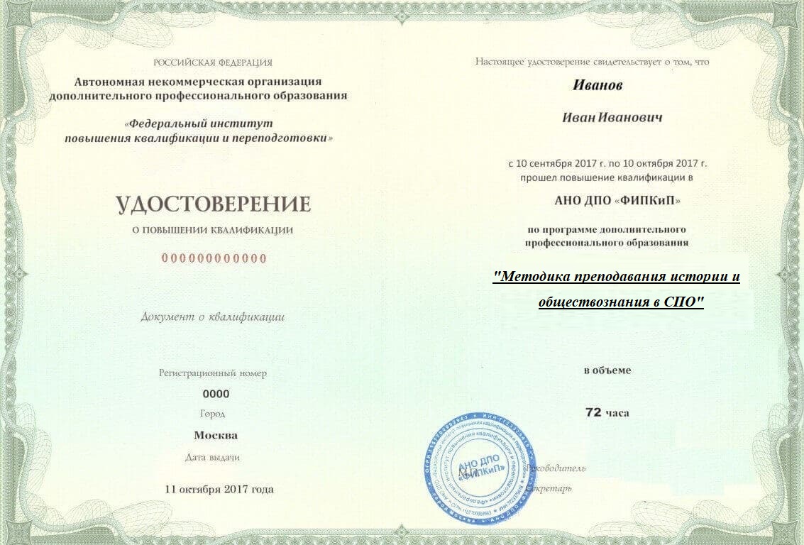 Удостоверение о повышении квалификации, дающее право на ведение профессиональной деятельности в избранной сфере.