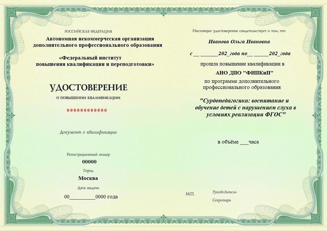 Удостоверение о повышении квалификации, дающее право на ведение профессиональной деятельности в избранной сфере.