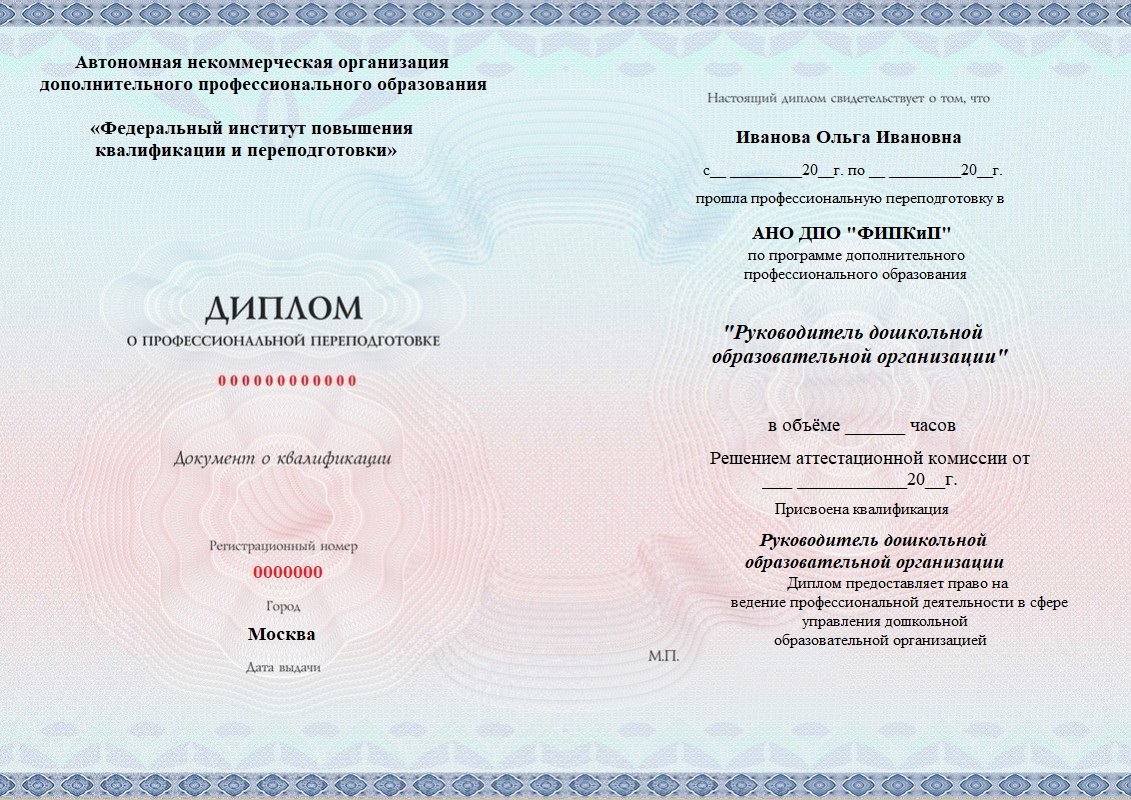 Диплом о профессиональной переподготовке, дающий право на ведение профессиональной деятельности в избранной сфере.