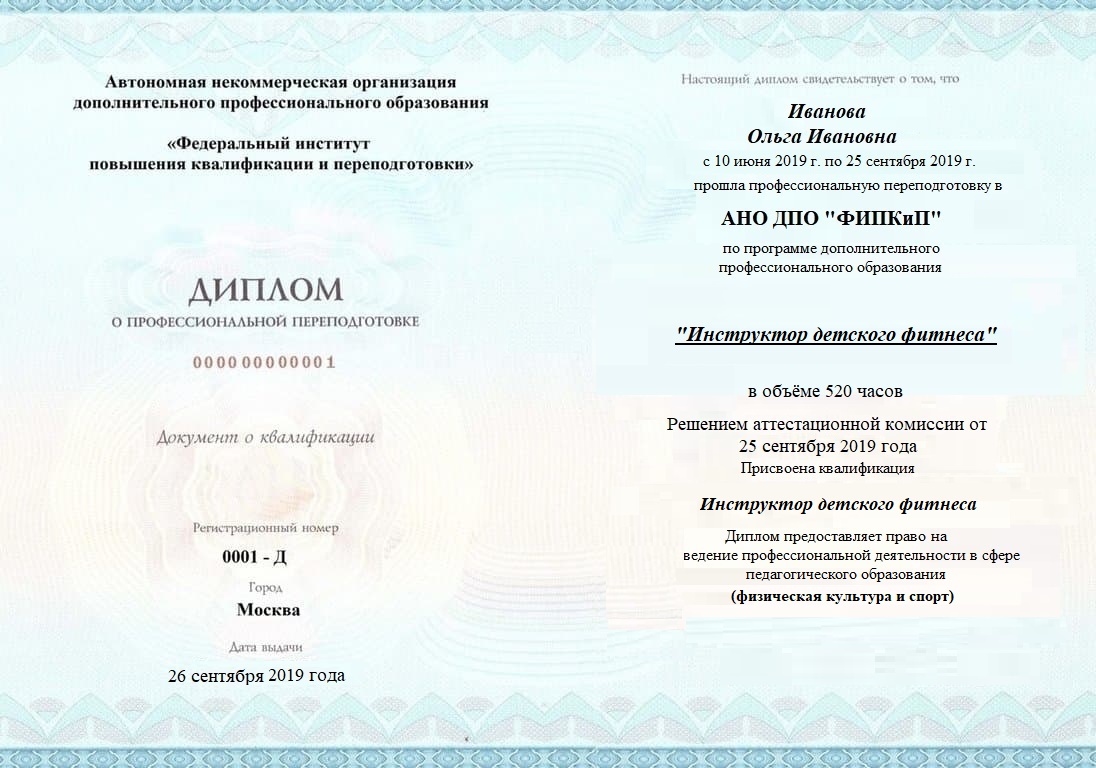 Диплом о профессиональной переподготовке, дающий право на ведение профессиональной деятельности в избранной сфере.