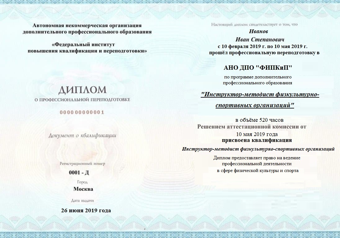 Диплом о профессиональной переподготовке, дающий право на ведение профессиональной деятельности в избранной сфере.