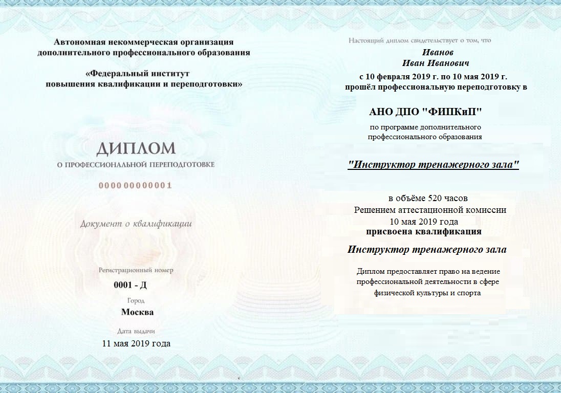 Диплом о профессиональной переподготовке, дающий право на ведение профессиональной деятельности в избранной сфере.