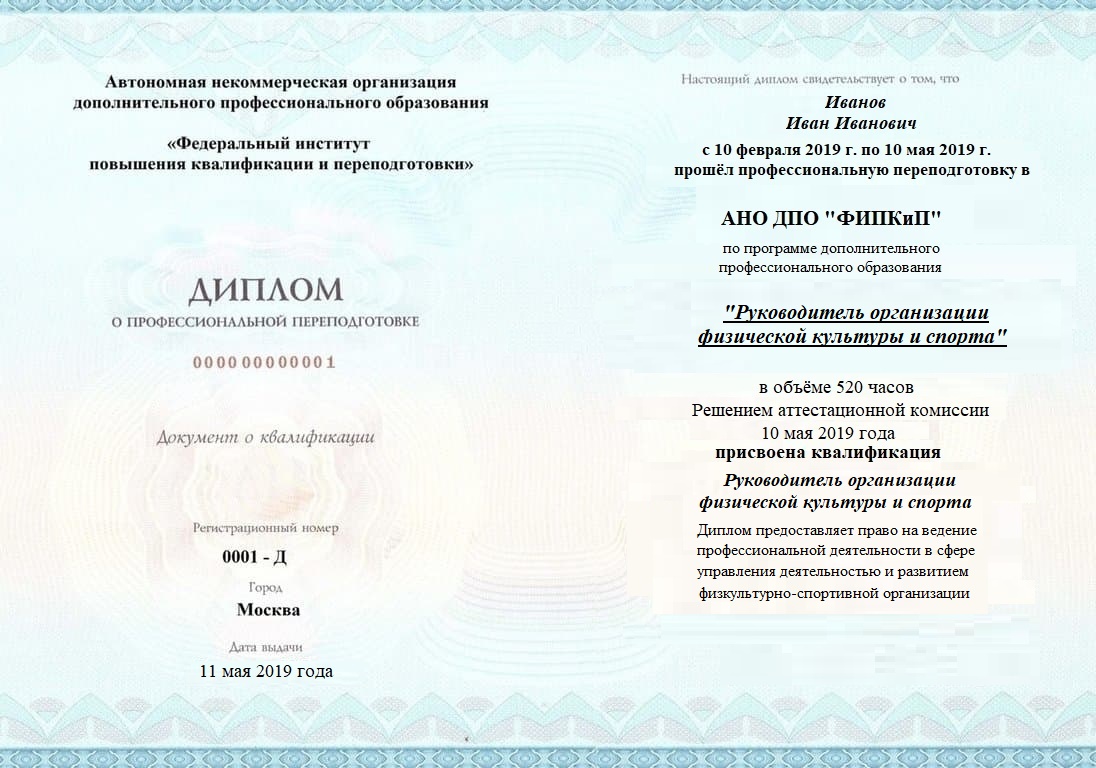Руководитель организации физической культуры и спорта. Профессиональная переподготовка дистанционно.