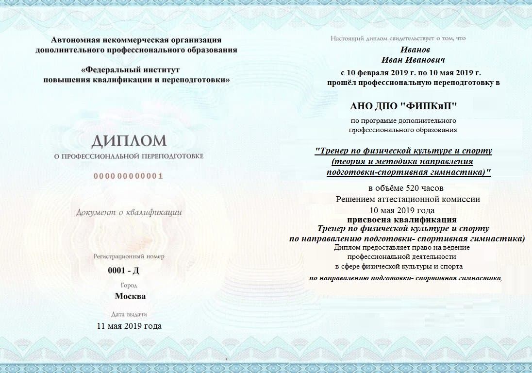 Диплом о профессиональной переподготовке, дающий право на ведение профессиональной деятельности в избранной сфере.
