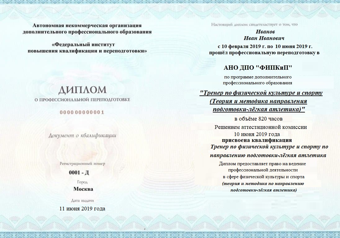 Диплом о профессиональной переподготовке, дающий право на ведение профессиональной деятельности в избранной сфере.