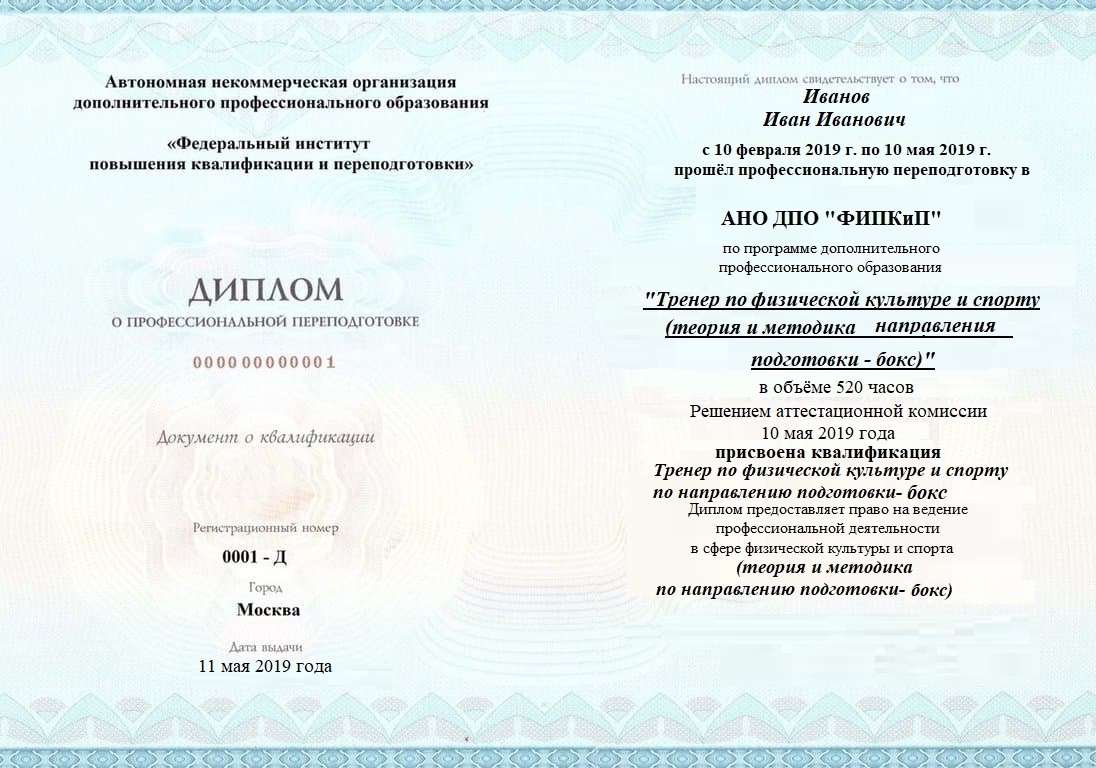 Диплом о профессиональной переподготовке, дающий право на ведение профессиональной деятельности в избранной сфере.