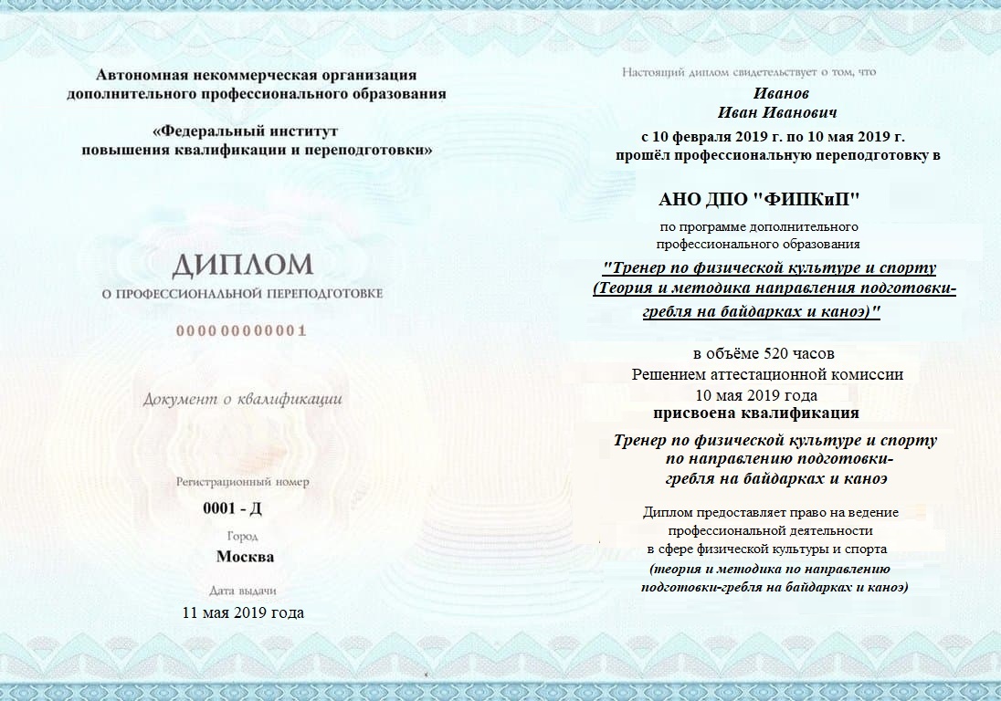 Диплом о профессиональной переподготовке, дающий право на ведение профессиональной деятельности в избранной сфере.