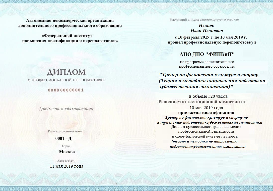 Диплом о профессиональной переподготовке, дающий право на ведение профессиональной деятельности в избранной сфере.