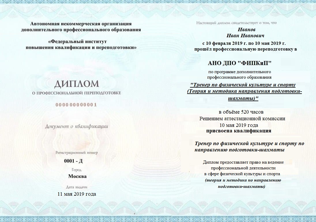 Диплом о профессиональной переподготовке, дающий право на ведение профессиональной деятельности в избранной сфере.