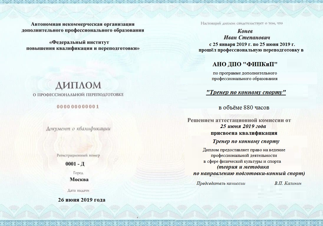 Диплом о профессиональной переподготовке, дающий право на ведение профессиональной деятельности в избранной сфере.