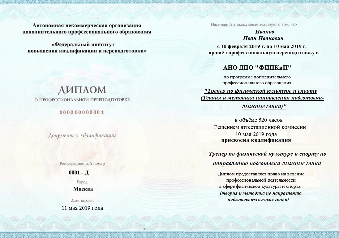 Диплом о профессиональной переподготовке, дающий право на ведение профессиональной деятельности в избранной сфере.