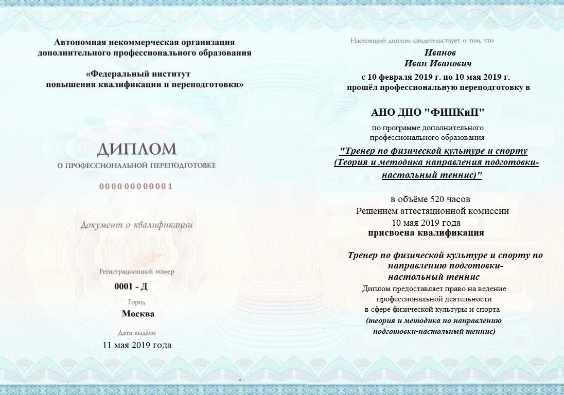 Диплом о профессиональной переподготовке, дающий право на ведение профессиональной деятельности в избранной сфере.