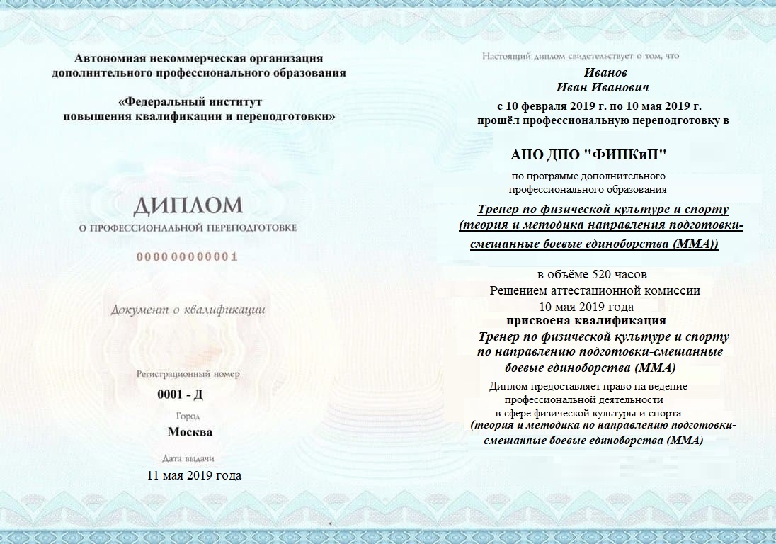 Диплом о профессиональной переподготовке, дающий право на ведение профессиональной деятельности в избранной сфере.