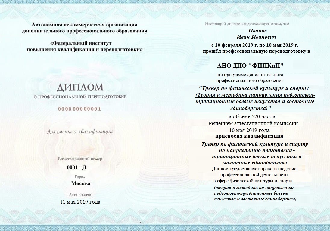 Диплом о профессиональной переподготовке, дающий право на ведение профессиональной деятельности в избранной сфере.