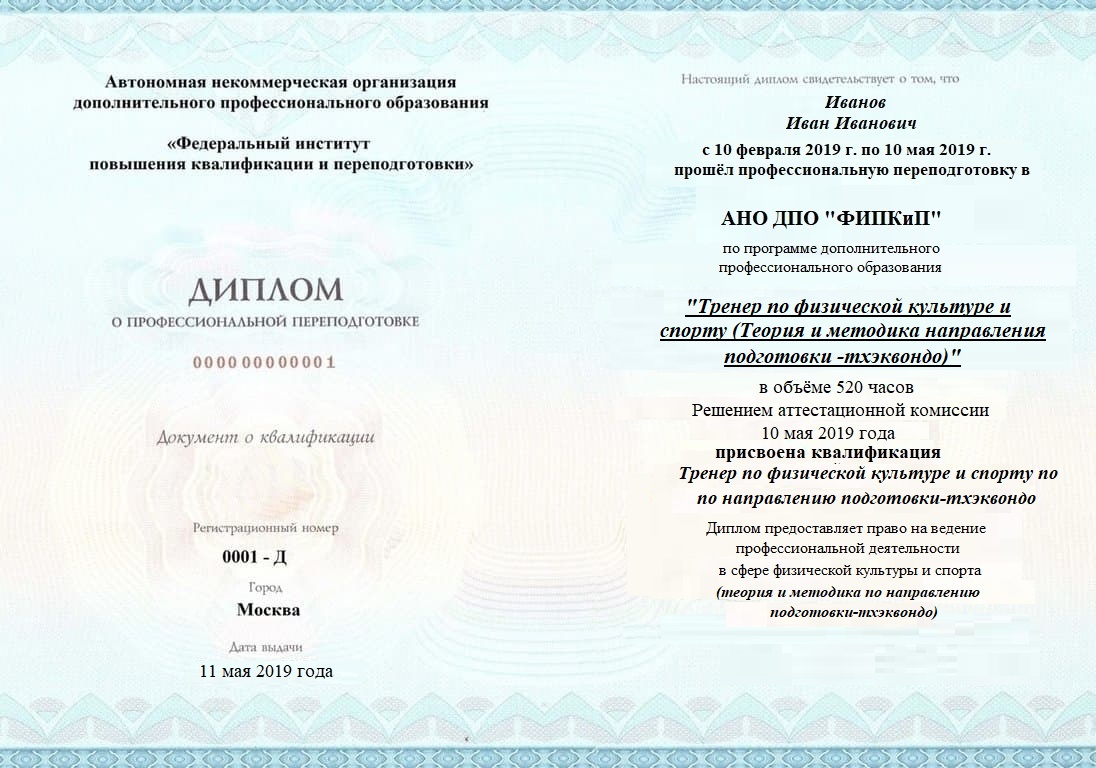 Диплом о профессиональной переподготовке, дающий право на ведение профессиональной деятельности в избранной сфере.