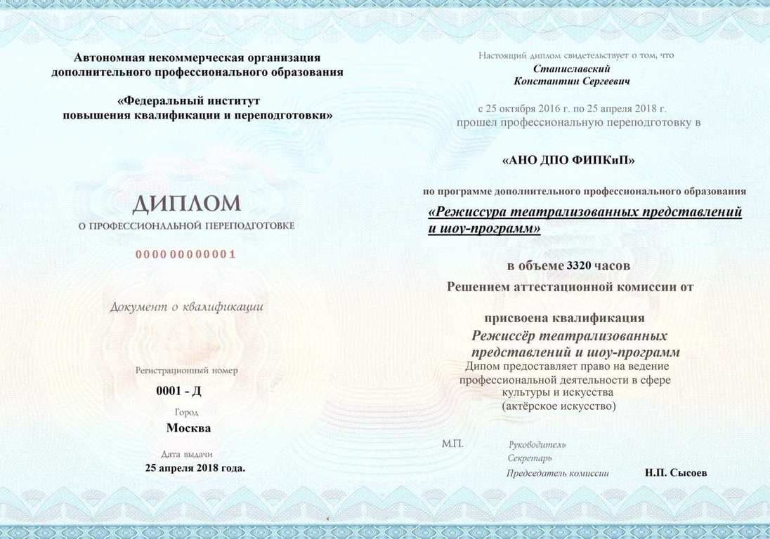 Диплом о профессиональной переподготовке, дающий право на ведение профессиональной деятельности в избранной сфере.